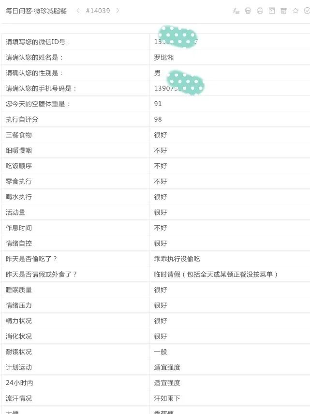 调整体质,也要面临减重减脂人群的问题——坚持,尤其是厨师要面对的美食诱惑太大了!模板式的套餐根本应对不了每天的饮食变化。而微珍可以在填写完每日问答后,营养师及时调整第二天的菜单,真的很精准了,这也是体重能掉得如此理想的原因~